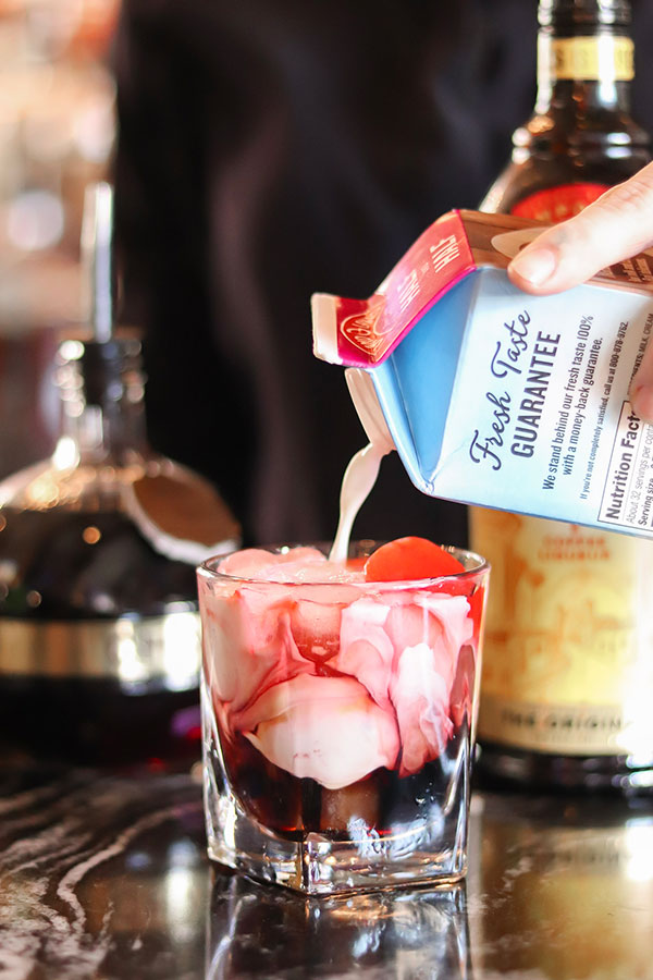 Kahlua, Chambord, Cream, Raspberry Garnish