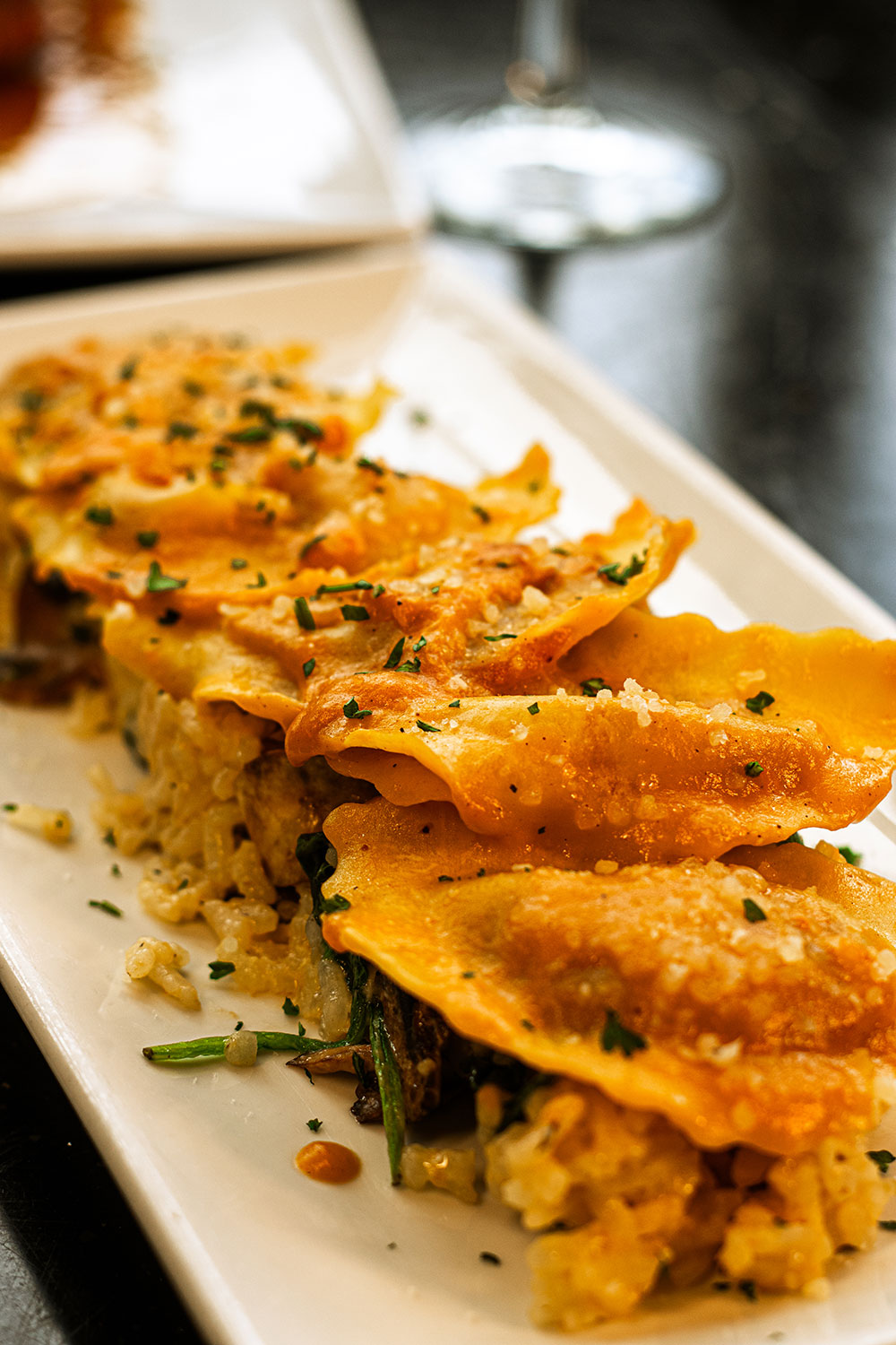 ✓Butternut Squash Ravioli – made with spinach mushroom risotto with butternut cream sauce and choice of soup or salad. 🍄 🥣