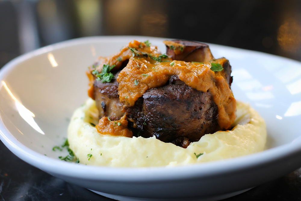 ✓Pork Osso Bucco – topped roasted vegetable puree, under mashed potatoes with choice of soup or salad. 🍖 🔥