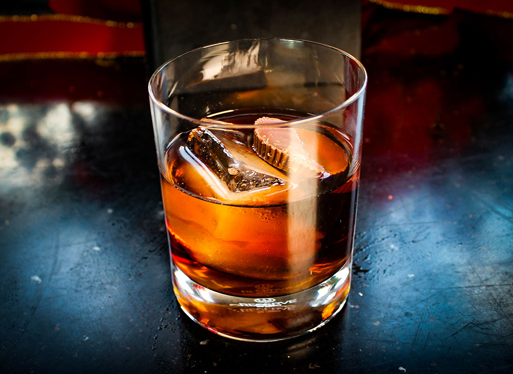 PEANUT BUTTER CUP MANHATTAN: Skrewball Peanut Butter Whiskey, Kahula, Dry Vermouth and Chocolate Bitter. 🥜 🍫 🥃